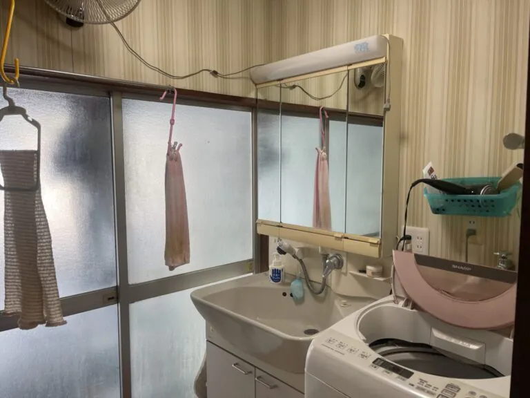- 当初は、浴室だけの改装依頼でしたが、洗面化粧台も傷んでいたため、お取替えと脱衣室のクロスの貼替えまで提案しました。脱衣室のクロスを貼り替えたことで、脱衣室から浴室まで明るく新築のような雰囲気になりました。
