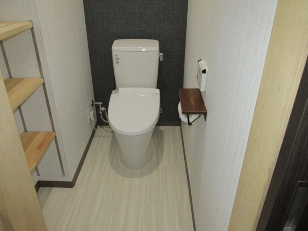 2つのトイレを一つにして、可変棚の収納も追加したことで、よりすっきり広々とした…