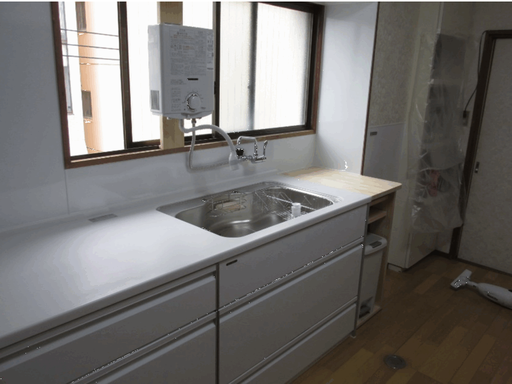 キッチンパネルを白に統一したことで、明るいキッチンへと生まれ変わりました。水…